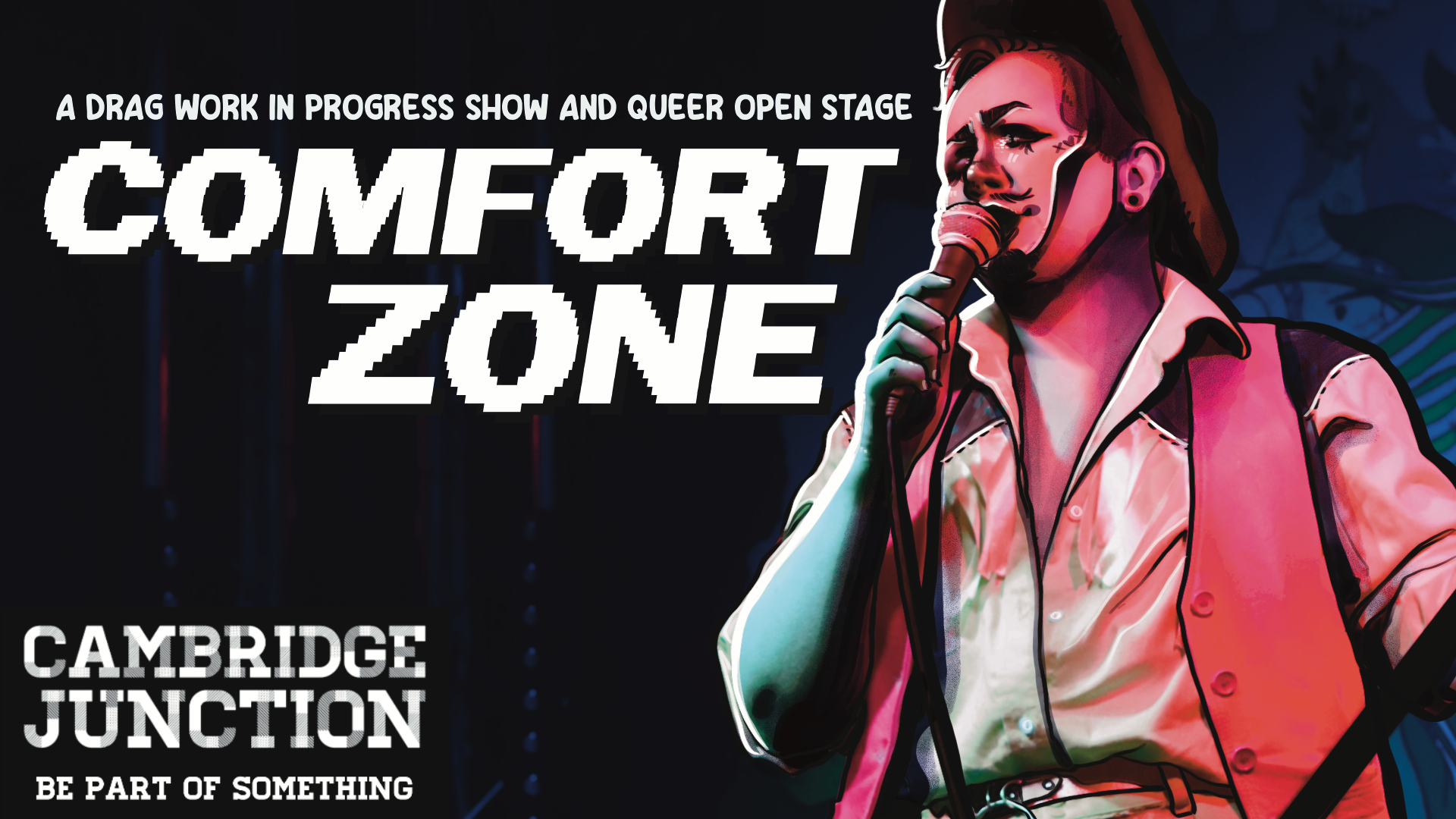 Comfort Zone is a drag show that is part open stage and part work-in-progress show which aims to develop new local drag talent as well as give established drag artists a place to try out new work in front of a supportive audience.