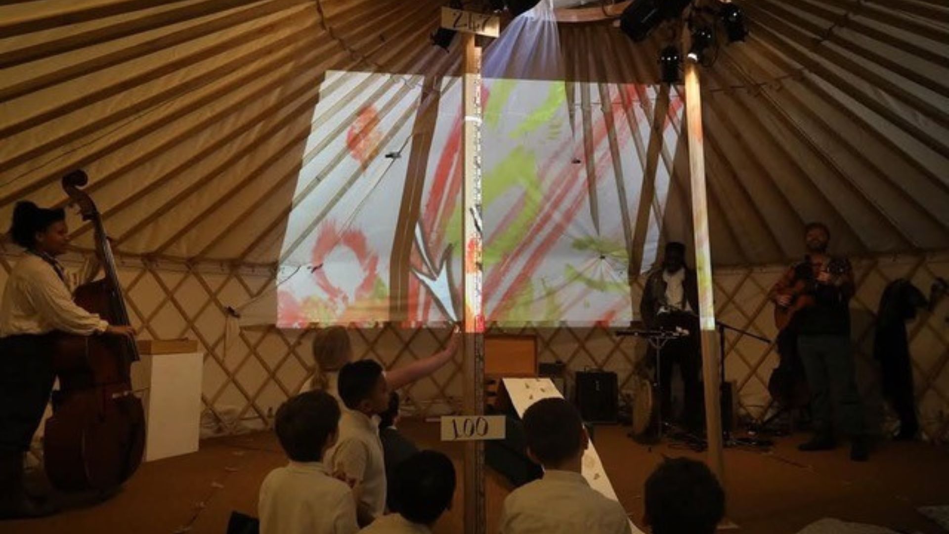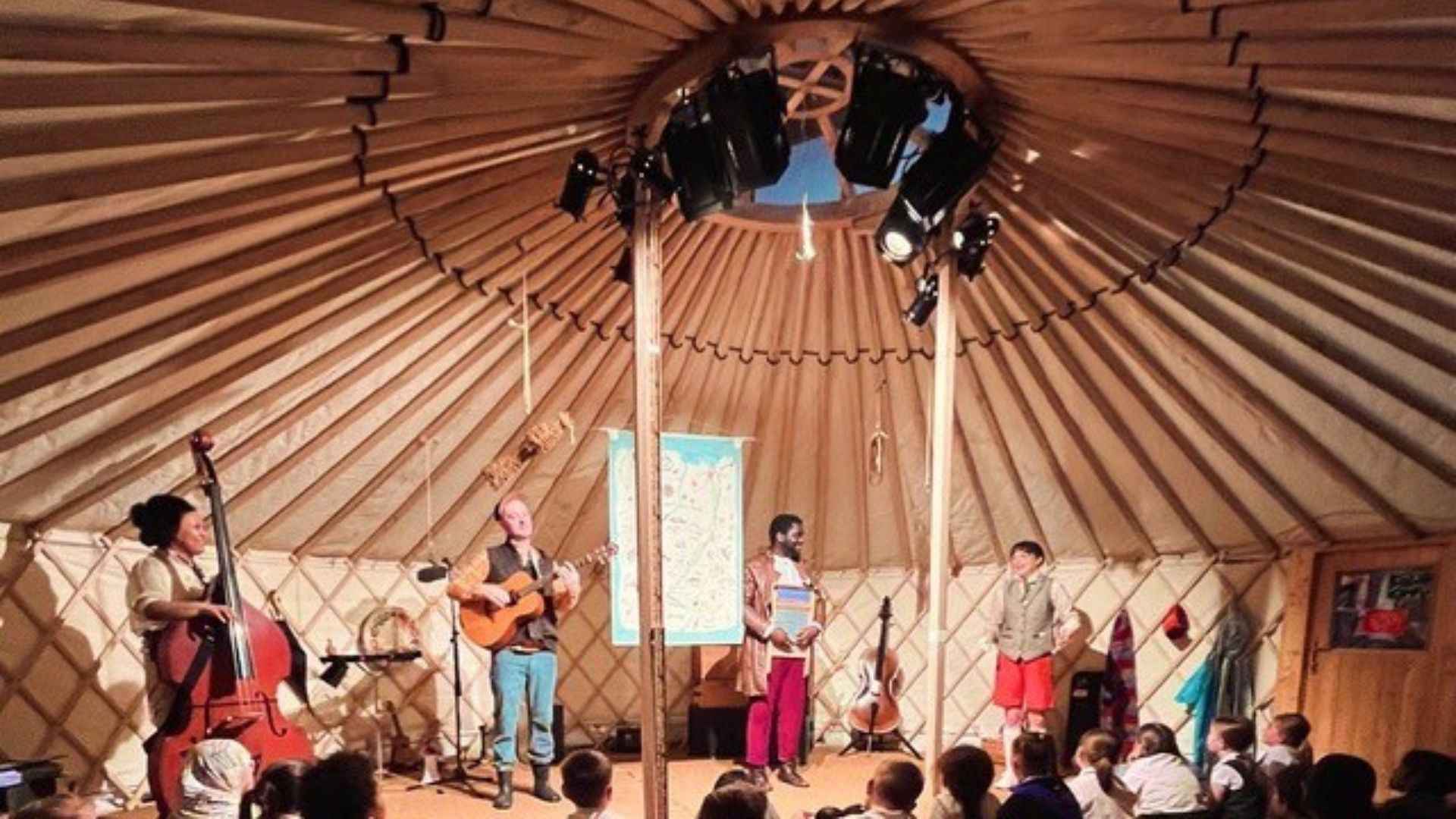 The show, featuring animation and NIE’s ensemble of actor/musicians, will be performed in a yurt with a mix of bench seating for adults and sitting on the floor for children.